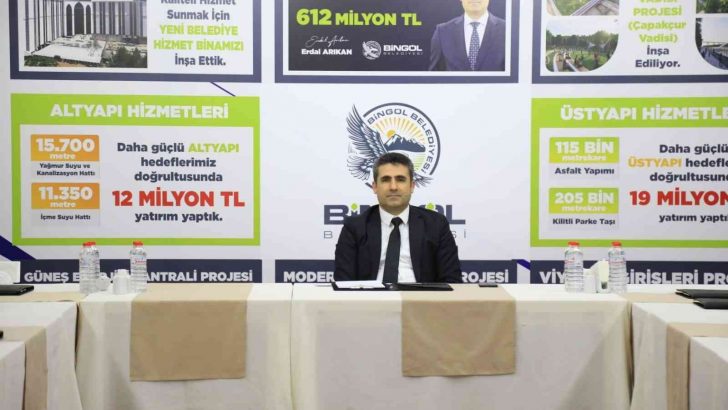 Bingöl Belediye Başkanı Erdal Arıkan, kentteki ulusal ve yerel basın mensuplarıyla bir araya gelerek yıl sonu değerlendirme toplantısı gerçekleştirdi. Başkan Arıkan, yapılan ve yapılacak olan projelerle ilgili bilgi verirken, birçok projenin bitme aşamasına geldiğini vurguladı. Bingöl Belediyesi olarak araç filosunu güçlendirdiklerini kaydeden Başkan Arıkan, “4 panelvan, 2 çöp aracı, 2 minibüs, 2 pikap, 1 vidanjör, 1 kazıcı yükleyici kepçe, 1 tuz makinası, 1 arazi aracı, 1 arazöz1 paletli ekskavatör ve 1 mini yükleyiciyi filomuza dahil ederek araç sayımızı 115’a yükselttik” dedi.