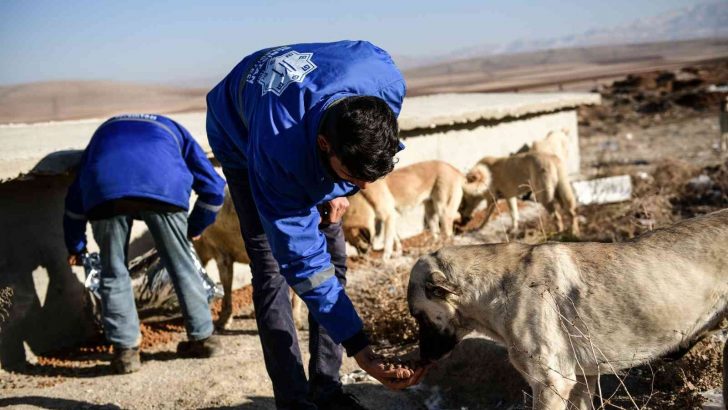 Elbistan’da sokak hayvanlarına belediyeden mama ve yem desteği
