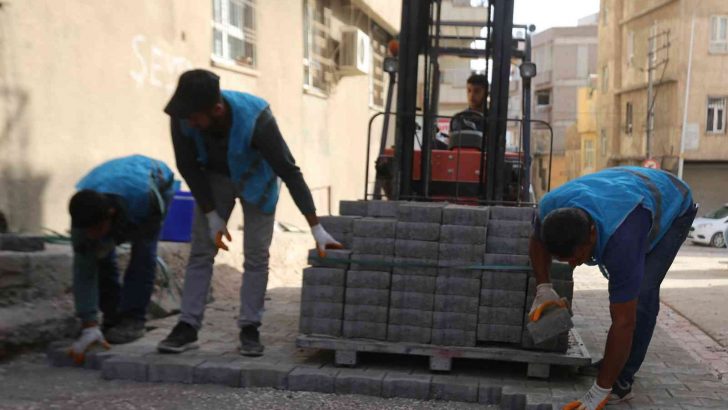 Haliliye Belediyesi, üst yapı hizmetleri kapsamında 3 mahallede kilitli beton parke döşeme çalışmalarını sürdürüyor.