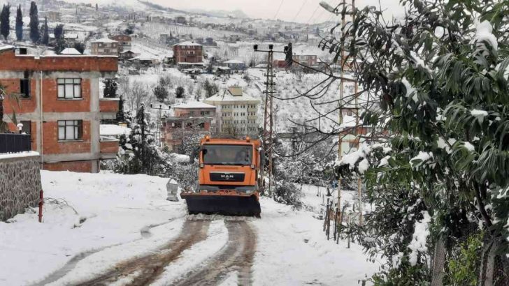Trabzon’da dün akşam saatlerinde aniden etkili olan kar yağışı, hayatı olumsuz etkilerken, yolu kar nedeniyle kapanan 15 mahallenin yolunu açma çalışmaları sürüyor.