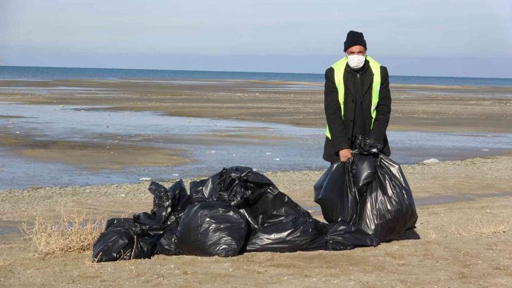 Dünyanın en büyük sodalı gölü olan Van Gölü’nde küresel iklim değişikliğinin etkisiyle suların çekilmesi sonucu ortaya çıkan çöpler temizlendi.