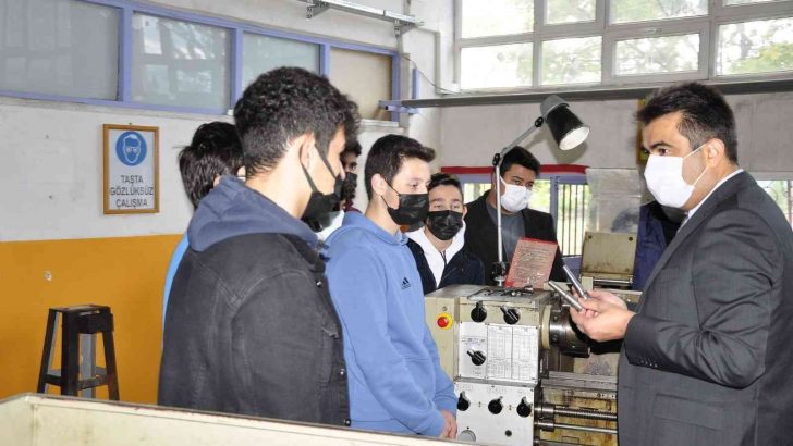 Sınıf ve atölyelerde öğrencilerle sohbet eden Gümüş, “Bilimsel ve teknolojik gelişmeler yaşam tarzımızı, alışkanlıklarımızı ve ihtiyaçlarımızı durmaksızın değiştirmeye devam ediyor. Özellikle yeni teknolojiler ve dijitalleşme ile gereksinimlerimizin değişimi, ihtiyaçlara çözümler sunan veya sunması planlanan meslekler ön plana çıkıyor. Bu bağlamda, ülkemizde hizmet ve ürün sektöründe yerli üretimin gelişmesi ve uluslararası alanda rekabet edebilir markalar oluşturabilmek üzere son yıllarda teşvik edici birçok politika uygulanmaktadır. Bu durum yerli üretimin artmasına, genç nesillerin girişimciliğe yönlenmesini sağlamaktadır” dedi.