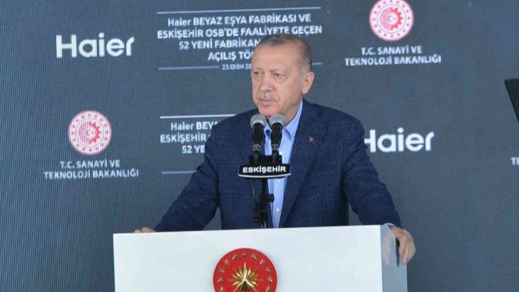 Erdoğan, AK Parti Eskişehir Genişletilmiş İl Danışma Toplantısının ardından Organize Sanayi Bölgesi’nde fabrikaların açılış törenine katıldı. Beyaz eşya üreticisi Haier ile Organize Sanayi Bölgesi’nde (OSB) faaliyete geçen 52 yeni fabrikanın açılış töreni öncesinde konuşan Cumhurbaşkanı Recep Tayyip Erdoğan, Dünyanın korovirüsten dolayı kabuğuna çekildiği bir dönemde Türkiye’nin dünyaya açıldığını söyledi.