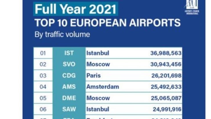 ACI Europe’un raporunda 2021 yılında en fazla yolcu ağırlayan Türkiye ve Rusya’daki havalimanları oldu. İGA İstanbul Havalimanı’nın 36 milyon 988 bin 563 yolcu sayısıyla en yoğun havalimanı olduğu ifade edilirken, Rusya’nın başkenti Moskova’da bulunan Şeremetyevo Uluslararası Havalimanı 30 milyon 943 bin 456 yolcu ağırladı. Listenin üçüncü sırasında ise Fransa’nın başkenti Paris’te bulunan Charles De Gaulle Havalimanı 26 milyon 201 bin 698 yer aldı. Hollanda’daki Amsterdam Schiphol Havalimanı dördüncü, Rusya’nın başkenti Moskova’da bulunan Domodedovo Havalimanı ise beşinci en yoğun havalimanı oldu.