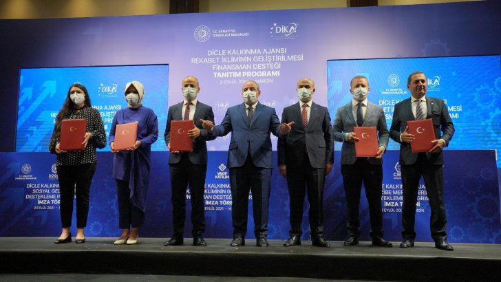 Çeşitli temaslarda bulunmak için Mardin’i ziyaret eden Sanayi ve Teknoloji Bakanı Mustafa Varank, sanayicilerle bir araya gelerek istişare ve değerlendirme toplantısı gerçekleştirdi. Toplantıda Dicle Kalkınma Ajansı Rekabet İklimi Geliştirilmesi Finansman Desteği İmza Töreni gerçekleşti. Programa Bakan Varank’ın yanı sıra Mardin Valisi ve Büyükşehir Başkan Vekili ile DİKA Yönetim Kurulu Başkanı Mahmut Demirtaş, AK Parti Mardin Milletvekili Cengizhan Dermirkaya, Artuklu Üniversitesi Rektörü Prof. Dr. İbrahim Özcoşar, iş insanları ve STK temsilcileri katıldı.