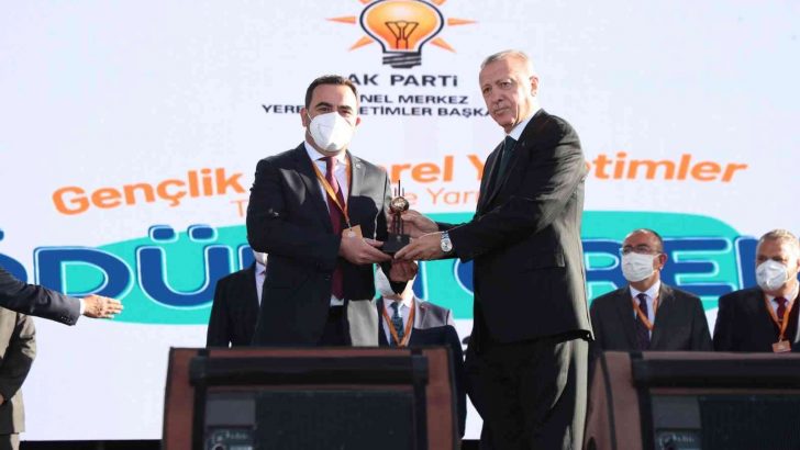 BAŞİSKELE BELEDİYE BAŞKANI YASİN ÖZLÜ, ÖDÜLÜNÜ CUMHURBAŞKANI RECEP TAYYİP ERDOĞAN’IN ELİNDEN ALDI.
