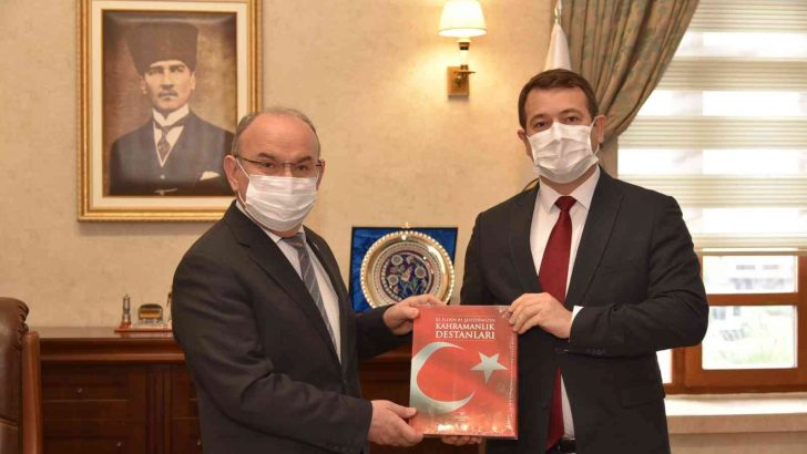Ziyarette Aile ve Sosyal Hizmetler İl Müdürü Gülgeç, şehitlerin destansı fedakarlıklarını ölümsüz kılmak, milli değerleri gelecek nesillere taşıyabilmek adına Aile ve Sosyal Hizmetler Bakanlığı Şehit Yakınları ve Gaziler Genel Müdürlüğü tarafından hazırlanan “81 İlden 81 Şehidimizin Kahramanlık Destanları” adlı kitabı Vali Yaşar Karadeniz’e takdim etti.