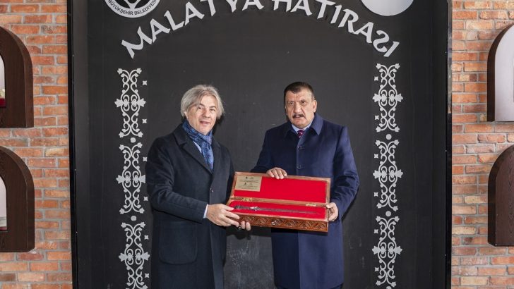 Malatya Büyükşehir Belediye Başkanı Selahattin Gürkan Kültür ve Turizm Bakan Yardımcısı Demircan’a ziyaretlerinin anısına Kayısı ve Arslantepe’de imal edilen tarihin en eski kılıcının replikasını taktim etti.