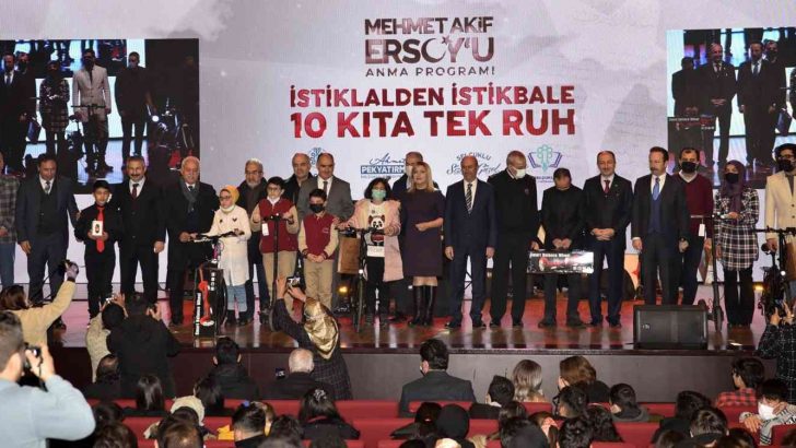 Selçuklu Kongre Merkezi’nde düzenlenen program Kur’an-ı Kerim tilaveti, İstiklal Şairi Mehmet Akif Ersoy için okunan hatim duası ve Akif’in hayatının canlandırıldığı tiyatro gösterisiyle başladı. İstiklal Marşı okuma yarışmasının birincisi olan öğrencinin milli marşımızın 10 kıtasını okuması da salondan büyük alkış aldı.