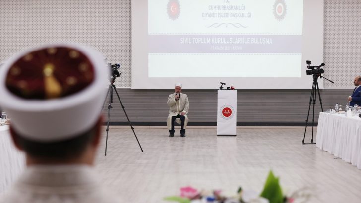 Artvin’de STK temsilcileriyle bir araya gelen Diyanet İşleri Başkanı Ali Erbaş, “Biz iyilikte yardımlaşmak ve iyiliği paylaşmak, insanlara daha iyi hizmeti nasıl götürebiliriz, bunu müzakere etmek üzere buradayız” dedi.
