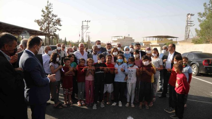 Yol ortasında çocuklarla kurdela kesti
