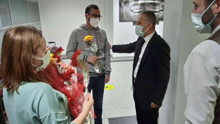 Tüm yurtta olduğu gibi Düzce’de Toplum Ağız Diş Sağlığı Haftası yapılan çeşitli etkinliklerle kutlanıyor. Bu kapsamda Dünyanın en iyi 3 sağlık kuruluşundan birisi seçilen Düzce Ağız Diş Sağlığı Merkezini ziyaret eden Sağlık Müdürü Dr. Yasin Yılmaz, diş hekimlerinin ve merkezde bulunan personelin haftasını çiçek vererek kutladı.