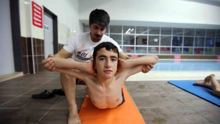 9 yaşından beri yüzme havuzunda antrenman yapan Metin Balki ise “Skolyozum var o yüzden korse takıyorum. Pandemi dolayısıyla gelemedik. O yüzden yine değerim düştü ve yüzmeye başladık. Ameliyat olacaktım ama sonra korse taktım. Yüzmeye gelince rahatlıyorum. Arkadaşlarımla gelip burada yüzüyoruz. Korse ilk başlarda rahatsız ediyordu ama sonra alıştım” dedi.
