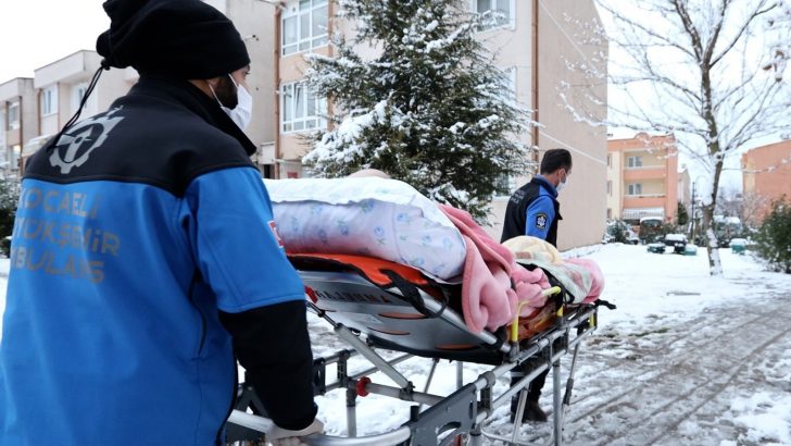 Kocaeli Büyükşehir Belediyesi’nin hasta nakil ambulansları, zorlu kış şartlarına rağmen ihtiyaç sahiplerine hizmet vermeye devam ediyor.