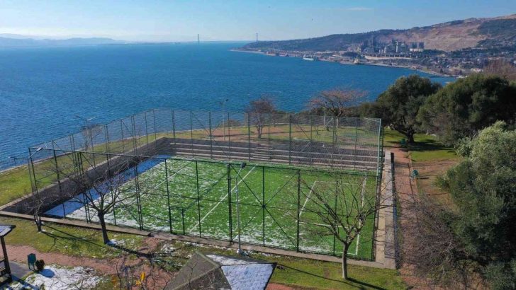 Körfez’de Hereke seyir terasına yapılan deniz manzaralı halı saha hizmete açıldı.