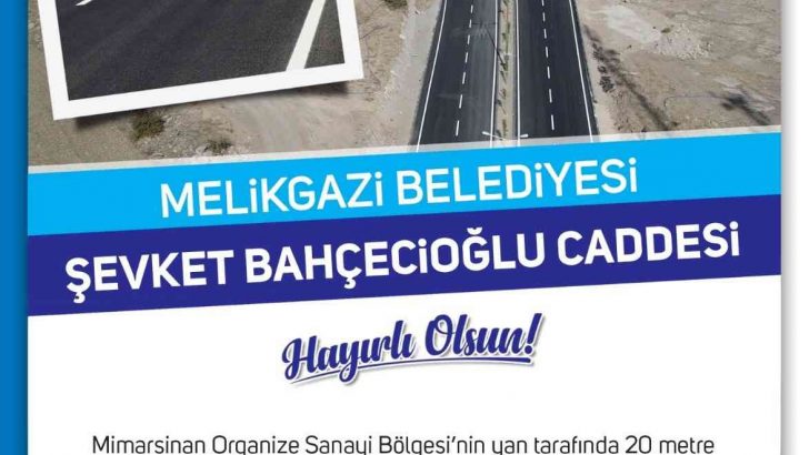 Melikgazi Belediyesi, Mimarsinan Organize Sanayi Bölgesi’nin yan tarafında 20 metre genişliğinde, 5 kilometre uzunluğunda yeni hizmete açılan Şevket Bahçecioğlu Caddesi’nin açılış törenini gerçekleştirecek.