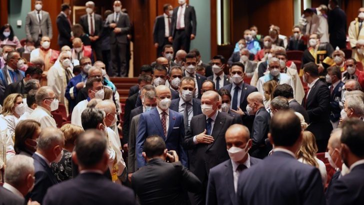 Tören, Cumhurbaşkanı Recep Tayyip Erdoğan’ın teşrifleriyle Cumhurbaşkanlığı Külliyesi Beştepe Millet Kongre ve Kültür Merkezi’nde düzenlendi. Burada konuşan Cumhurbaşkanı Erdoğan, üniversitelerin 2021-2022 Akademik Yılı’nın ülke ve millet için hayırlara vesile olmasını dileyerek “Yükseköğretimde, bugün hem yeni akademik yılın açılışını yapmanın hem de yeniden yüz yüze eğitim-öğretime başlamanın sevincini yaşıyoruz. Salgın tehdidine karşı gereken tedbirleri almak suretiyle, üniversitelerimizde eğitim-öğretimin kesintisiz sürmesi konusunda kararlıyız” dedi.