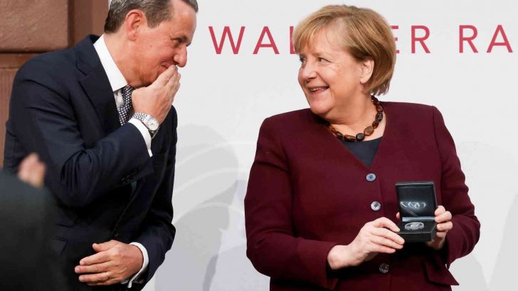 ALMANYA BAŞBAKANI ANGELA MERKEL’E DIŞ POLİTİKADA ÜSTÜN HİZMETLERİ NEDENİYLE WALTHER RATHENAU ÖDÜLÜ TAKDİM EDİLDİ.