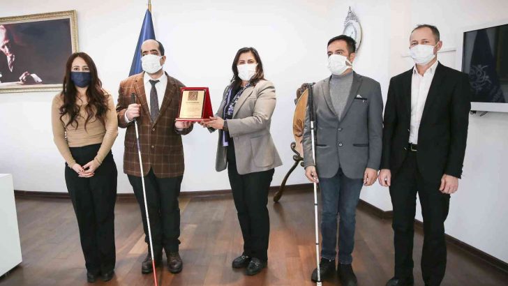 Altı Nokta Körler Derneği Aydın Şubesi Başkanı Bayram Özen ve yönetimi, Aydın Büyükşehir Belediye Başkanı Özlem Çerçioğlu’nu ziyaret etti.