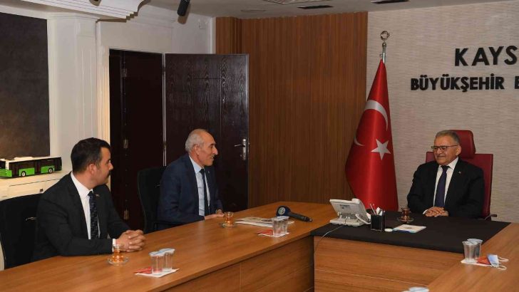 KAYSERİ BÜYÜKŞEHİR BELEDİYE BAŞKANI DR. MEMDUH BÜYÜKKILIÇ, GENEL KURULUNU YAPIP YENİDEN BAŞKAN SEÇİLEN KAYSERİ OTO SANATKÂRLARI ODASI BAŞKANI ŞEYHİ ODAKIR VE ODA YÖNETİMİNİ MAKAMINDA KABUL EDEREK, TEBRİK ETTİ