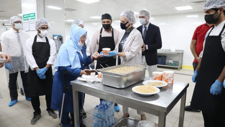 Proje ile Türk mutfaklarının geleneksel lezzetlerinin ihtiyaç sahibi vatandaşlara dağıtılacağını söyleyen DEÜ Rektörü Prof. Dr. Nükhet Hotar, “Geçen sene tüm tadilatlarını bitirdiğimiz ve adeta bir ameliyathane titizliğine sahip mutfağımızda hem öğrencilerimize hem personelimize en sağlıklı yiyecekleri sunuyoruz. Bugün de ihtiyaç sahibi vatandaşlarımıza yönelik sosyal sorumluluklarımızı yerine getirmek için İzmir Valiliğimiz, Türk Kızılayımız ve STK’larımızla uluslararası hijyen koşullarına sahip DEÜ Sosyal Tesisler Yemekhanesi’nde bir araya geldik. Gastronomi ve Mutfak Sanatları bölümü öğrencilerimizin de katkılarıyla hazırlanan tatlılarımızı, ihtiyaç sahibi vatandaşlarımıza dağıtacağız. Devletimizin üniversitemize verdiği imkanlar çerçevesinde ihtiyaç sahibi vatandaşlara sunduğumuz hizmetlerimiz geçmişte olduğu gibi gelecekte de devam edecek. Projeye katkı sunan İzmir Valiliğimize, Türk Kızılay’a, STK’lara teşekkür ediyoruz” diye konuştu.