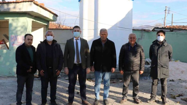 Manisa Büyükşehir Belediyesinin depremden sonra cami minaresi için harekete geçtiğini söyleyen Gelenbe Mahalle Muhtarı Mustafa Uyar inşaatı tamamlanan minarenin camiye kazandırıldığını söyledi.