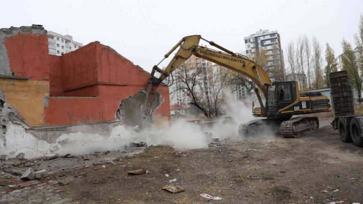 Melikgazi’de tehlike arz eden ve metruk yapılar yıkılıyor