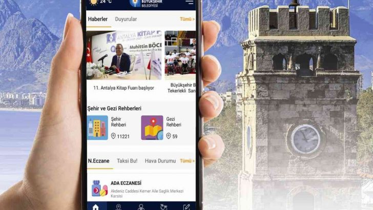 ANTALYA BÜYÜKŞEHİR BELEDİYESİ TARAFINDAN HAYATA GEÇİRİLEN ‘’ANTALYA MOBİL’’ UYGULAMASI ANTALYALILARIN HAYATINI KOLAYLAŞTIRIYOR. UYGULAMAYLA ULAŞIM, ETKİNLİKLER, GEZİ VE ŞEHİR REHBERİ, NÖBETÇİ ECZANELER VE EN YAKIN TAKSİ DURAĞI GİBİ 20 BİN NOKTAYA ULAŞMAK MÜMKÜN.