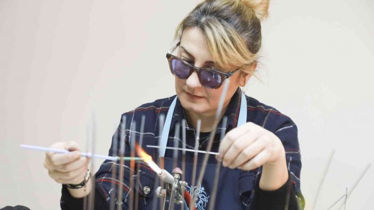 Aydın Büyükşehir Belediyesi’nin ücretsiz alevde cam işleme kurslarında, vatandaşlar hem öğreniyor, hem de üretiyor.