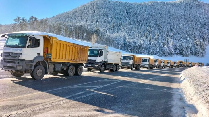 Manavgat Belediyesi Fen İşleri Müdürlüğü’ne bağlı hizmet veren 50 kamyon, sabah saatlerinde Torosların yaylalarından temiz kar getirmek için konvoy halinde şantiyeden çıktı. Getirilen temiz karlar, Atatürk Kültür Merkezi önüne dökülerek kar platformu oluşturulmaya başlandı. Manavgat Belediye Başkanı Şükrü Sözen de kar getirme çalışmalarını AKM’ye uğrayarak yerinde denetledi.