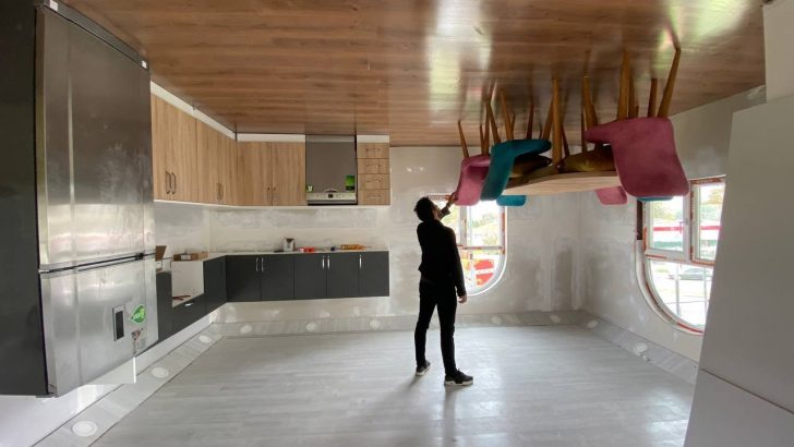 Sakarya Büyükşehir Belediyesi tarafından yapımına başlanan Ters Ev projesi tamamlanıyor. 300 metre kare alan üzerine inşa edilen 190 metrekarelik Ters Ev’in içerisinde devam eden montaj çalışmaları tamamlandığında, Sakarya yeni sosyal yaşam alanına kavuşacak.
