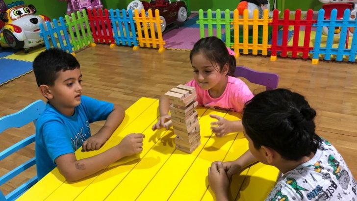 Darıca Belediyesi tarafından Sırasöğütler’deki Şehit Öğretmen Şenay Aybüke Yalçın Kadın ve Çocuk Spor Merkezi’nin üst katında çocuklar oyun oynarken, anneleri ise spor yapıyor.