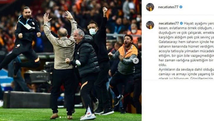 Galatasaray’da Teknik Direktör Fatih Terim’in yardımcı antrenörlüğünü yapan Necati Ateş, sarı-kırmızılılara yaptığı veda paylaşımında, “Ayrılıkların da sevdaya dahil olduğunu bu camiayı ve armayı, içinde yaşamış biri olarak iyi biliyorum. Gönüllerimizin bir olduğu bu süreçte bana inanarak görev veren hocamız Fatih Terim başta olmak üzere herkese teşekkür ederim” dedi.
